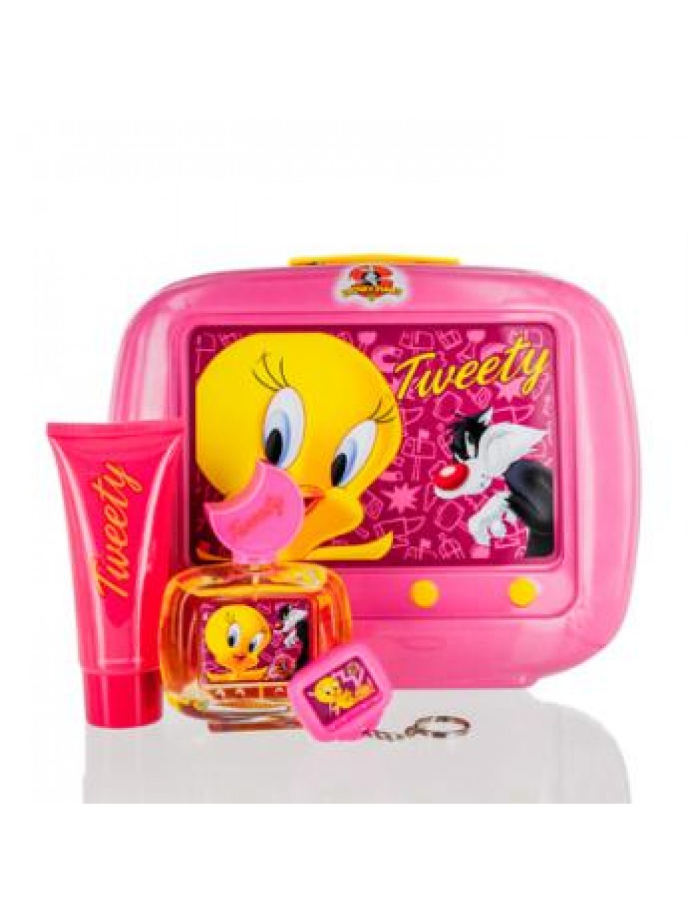 Looney Tunes Tweety/first American Brands Set: 4 Piece Set with Metal Carrying Case Eau De Toilette Natural Spray 100 ml Shower Gel 100ml Key Chain IN PINK TIN LUNCH BOX